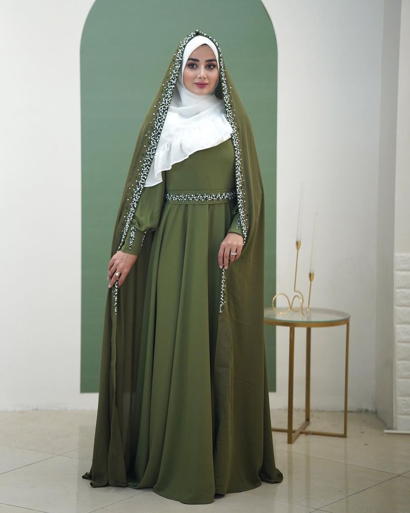 • Design: Handcrafted embellishments on the abaya, belt, chador, and scarf