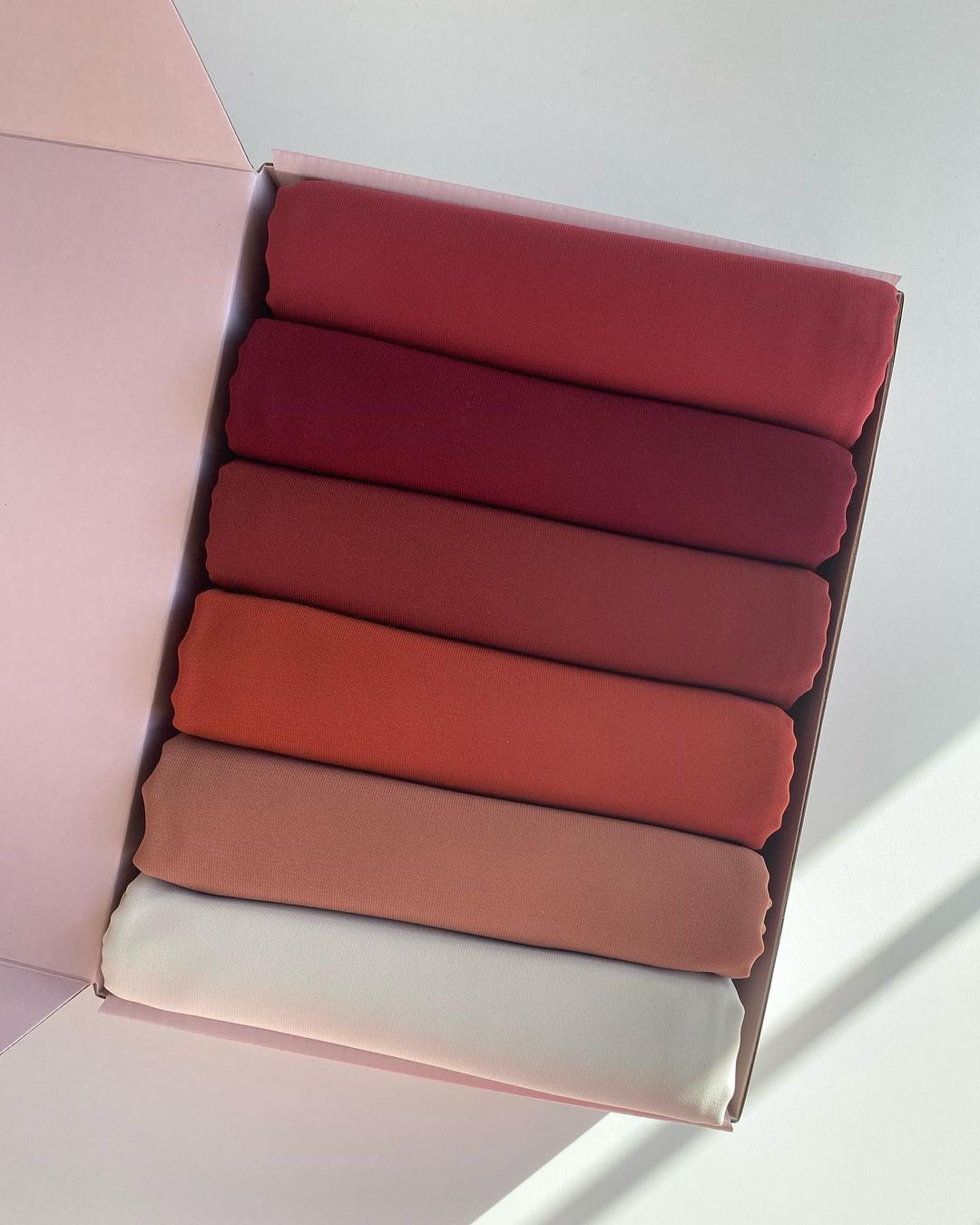 Treat a loved one (or yourself) to this full range of must have essential colors with our Gift Box of 6 Hijabs. This 6-piece set comes fully stocked with everything a woman needs in her collection. A must-have for all scarf and wrap looks.